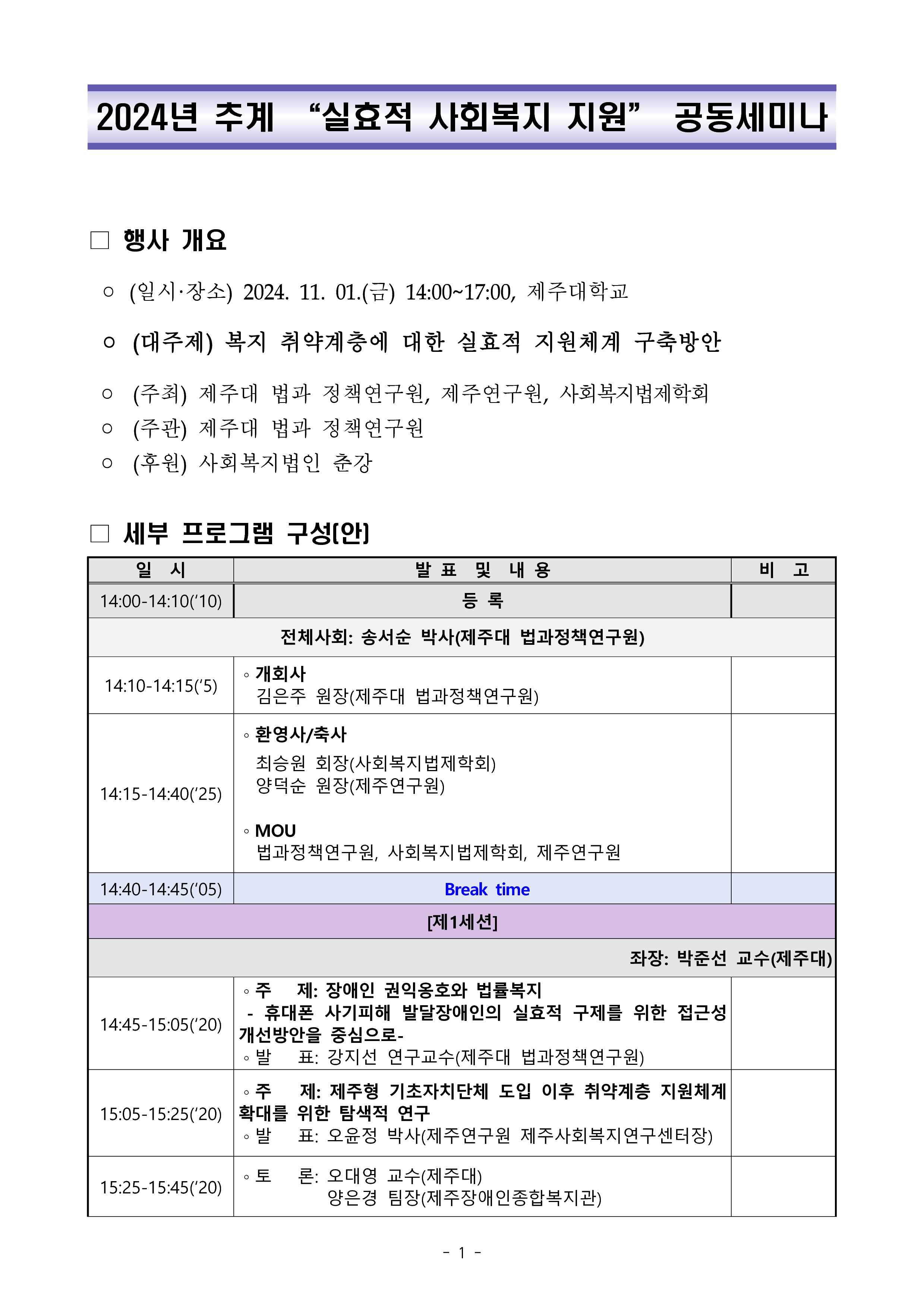 | 이전 | 2025년 하반기 2025 사회복지법제 연합포럼 개최 | root | 2025-12-09 |
